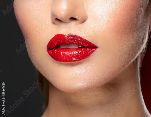 © Nanashi, Obraz premium Close-up of Woman's Face with Red Lipstick