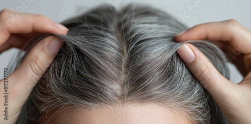© Darya, Fototapeta premium Close-Up of Woman's Gray Hair Roots