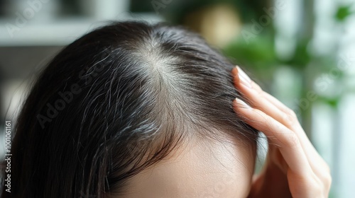 Fototapeta premium Close-Up of Woman's Hand Touching Her Head