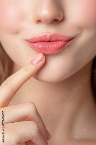 © MashMash, Obraz premium Close-Up of Woman's Lips with Bold Makeup and Glossy Texture - Sensual, Glamorous, and Vibrant Neon Backgrounds for Beauty, Fashion, and Makeup Concepts