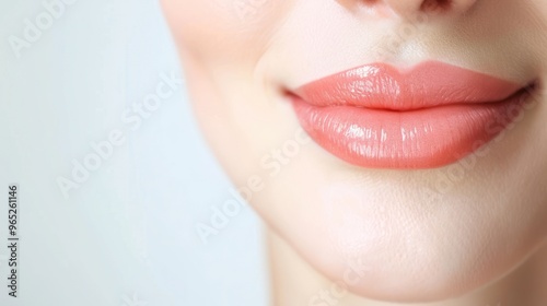 Obraz premium Close-up of Woman's Lips with Pink Gloss