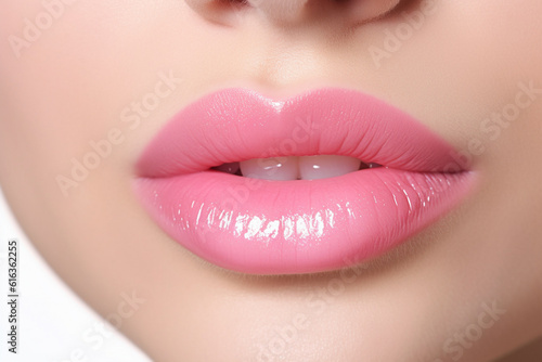 Fototapeta premium Close up of woman's lips with pink lipstick
