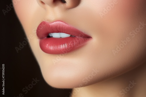 © Adobe Contributor, Fototapeta premium Close up of woman's lips with pink lipstick