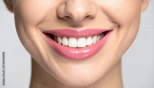 © FACTORY GRAPHICA , Fototapeta premium Close Up of Woman’s Pink Smiling Lips with Beauty Makeup