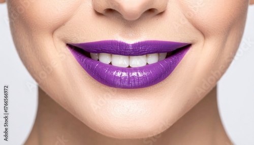 Fototapeta premium Close Up of Woman’s Purple Smiling Lips