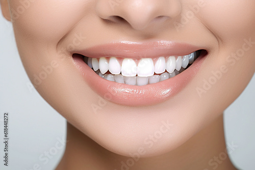 © Firn, Obraz premium Close up of woman's smiling mouth with white teeth