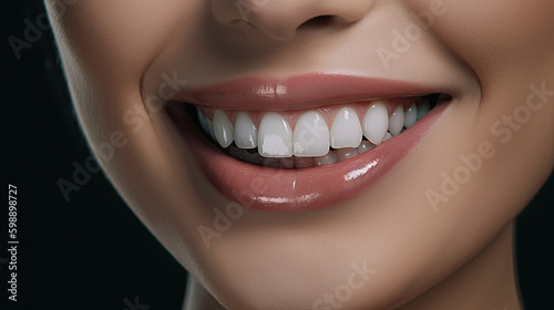Obraz premium Close-up of woman with perfect teeth. Generative AI