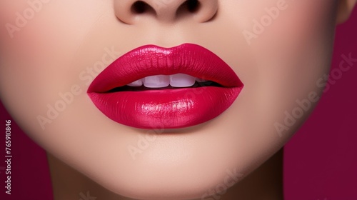 © Shakeel, Fototapeta premium Close-Up of Womans Face With Bright Red Lipstick