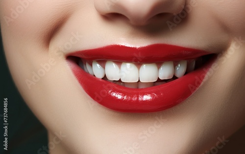 Fototapeta premium Close-Up of Womans Mouth With Red Lipstick