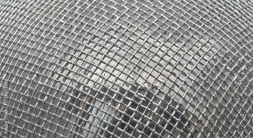 © Wera, Fototapeta premium Close-up of Woven Metal Mesh with Square Openings.