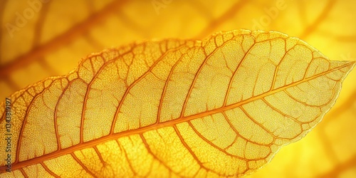 © keke, Obraz premium Close-up of Yellow Alder Leaf Surface with Fractal Patterns and Diffused Sunlight in Autumn