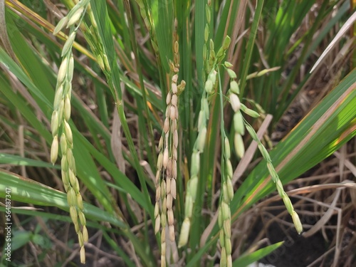 Obraz premium close up of yellow green rice field