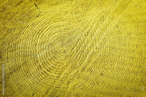 Fototapeta premium Close-up of yellow-painted wooden log cross-section with visible growth rings