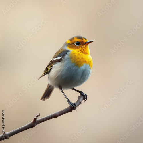 © Hugnaka, Fototapeta premium Close-up of yellow rumped warbler perched on branch, feathered, songbird