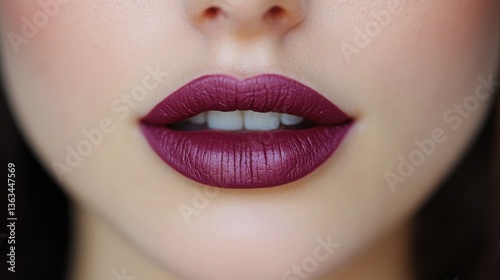 Obraz premium Close-up of young caucasian female with bold burgundy lipstick