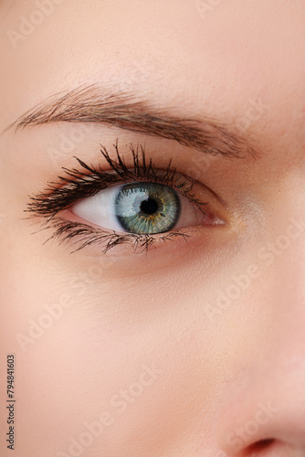 © fotofabrika, Obraz premium Close up of young female blue eye