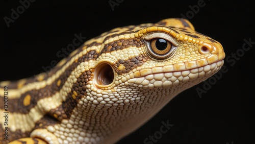 © Giuseppe Cammino, Naklejka premium Close-up of Young Lizard Head Looking Up with Bright Orange Eye
