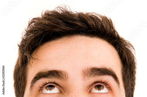 © cristovao31, Naklejka premium Close-up of Young man looking up