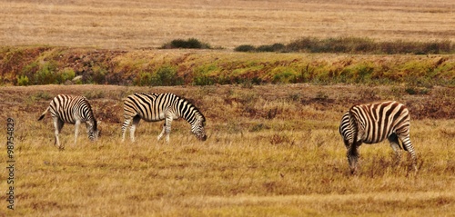 © lehmannw, Obraz premium Close up of Zebras grazing on dry meadow