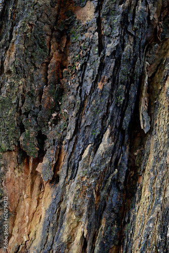 © Hadi, Fototapeta premium Close up old tree bark texture background, with different characters, perfect for natural theme