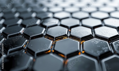 Obraz premium Close up on a pattern of metallic hexagons with a wet look, showcasing a...