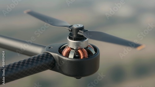 Obraz premium Close up on drone motor and propeller with carbon fiber arm technology