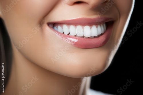 © Xyeppup, Fototapeta premium Close-up on perfect smile, post-dental treatment, reflective mirror, crisp lighting
