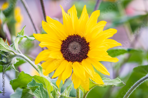 © Dmitrii Potashkin, Naklejka premium Close-up on the head of sunflower blooming, textures of stamens