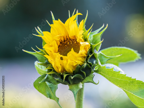 © Dmitrii Potashkin, Naklejka premium Close-up on the head of sunflower blooming, textures of stamens
