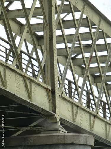 Fototapeta premium Close-up on the steel structure of a bridge - Gros plan sur la structure métallique d'un pont
