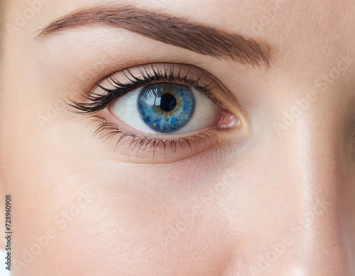 Obraz premium close up on woman's face with blue eye, advertising photography,...