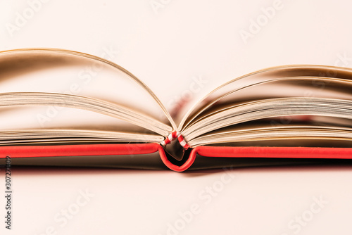 Fototapeta premium Close up open books on white background