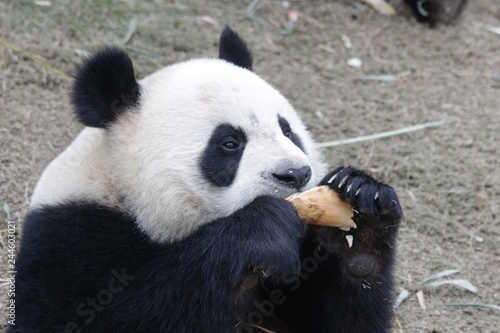 Obraz premium Close up Panda enjoys Eating Bamboo Shoot, China