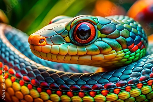 © Sirinporn, Fototapeta premium Close-Up Panoramic of a Snake's Scales: Detailed Reptile Texture