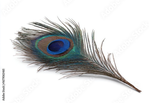Obraz premium Close-up peacock feather on white background