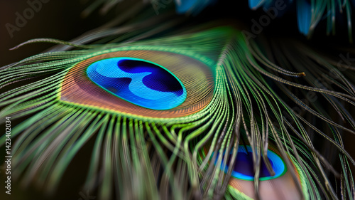 © Tark, Naklejka premium Close-up peacock feathers Generative AI