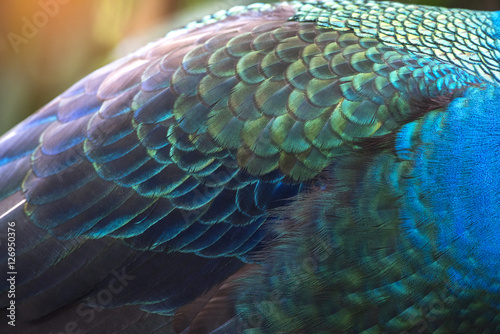 © chamnan phanthong, Naklejka premium close-up peacock feathers, wing feather
