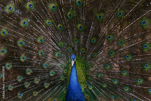 Obraz premium Close up peacock spreading tail feathers