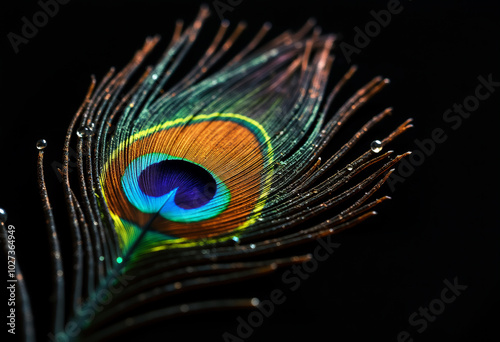 © Anoottotle, Obraz premium Close up peacock tail with drplets