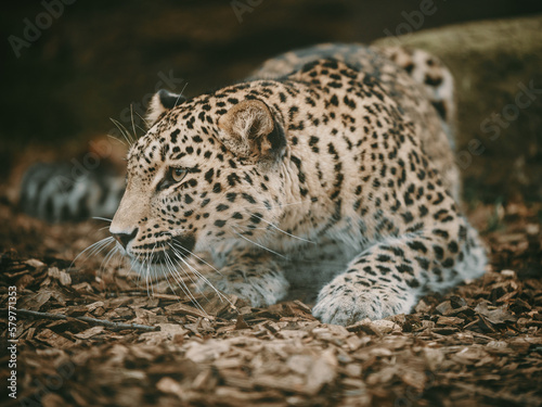 Fototapeta premium Close Up - Persischer Leopard (Panthera pardus tulliana) in Lauerstellung