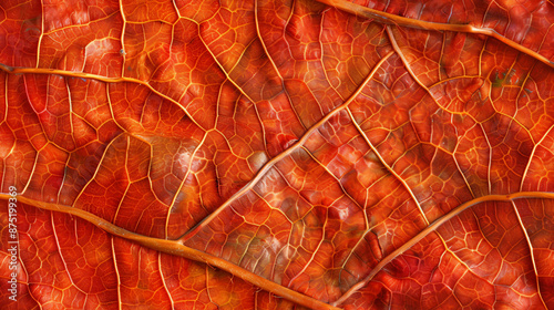 Fototapeta premium Close-up photo capturing the intricate web of veins in a vibrant autumn leaf