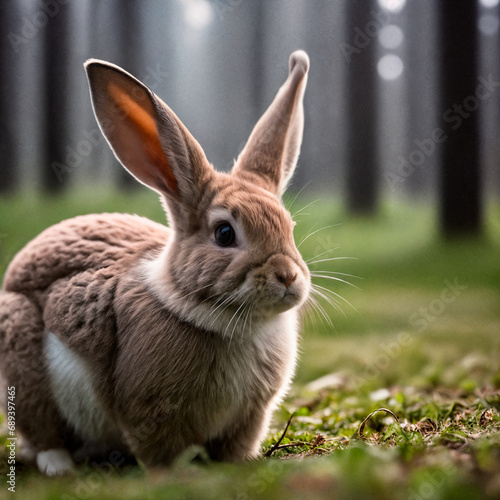 Fototapeta premium Close-up photo of a rabbit, forest, haze, halo, bloom, dramatic atmosphere
