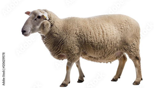© Giama22, Fototapeta premium Close-up photo of a sheep with long, white wool isolated on white background