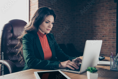 Fototapeta premium Close up photo of attractive middle-aged she her lady woman sitt