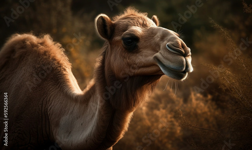© Bartek, Obraz premium close up photo of Bactrian camel in its natural habitat. Generative AI