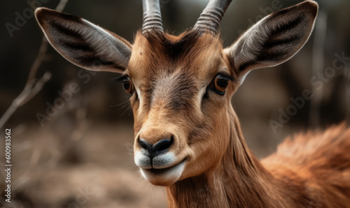 © Bartek, Fototapeta premium close up photo of goat antelope on blurry background of its natural habitat. Generative AI