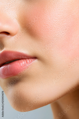 © Oksana_Latysheva, Obraz premium Close up photo with beautiful female face with plump lips. Close-up face detail.