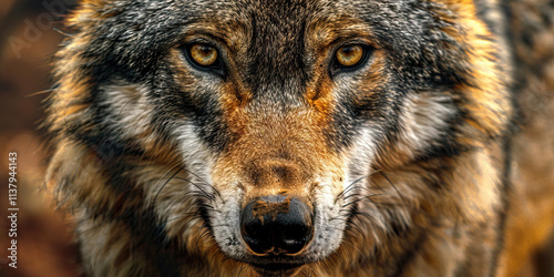 Fototapeta premium Close-up Photograph of a Wolf's Face