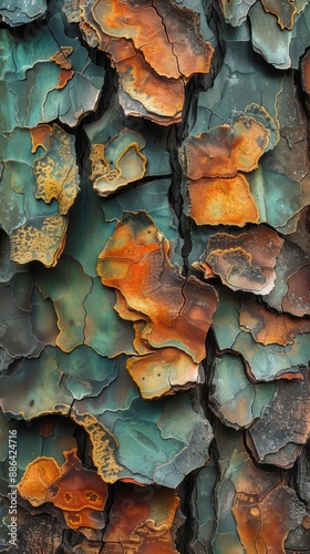 © Suradet Rakha, Obraz premium Close-up photograph of redwood tree bark, 32k resolution, showing the deep grooves and rich color.
