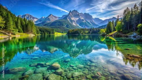 Fototapeta premium Close-up photography of stunning alpine landscapes reflected in crystal clear...